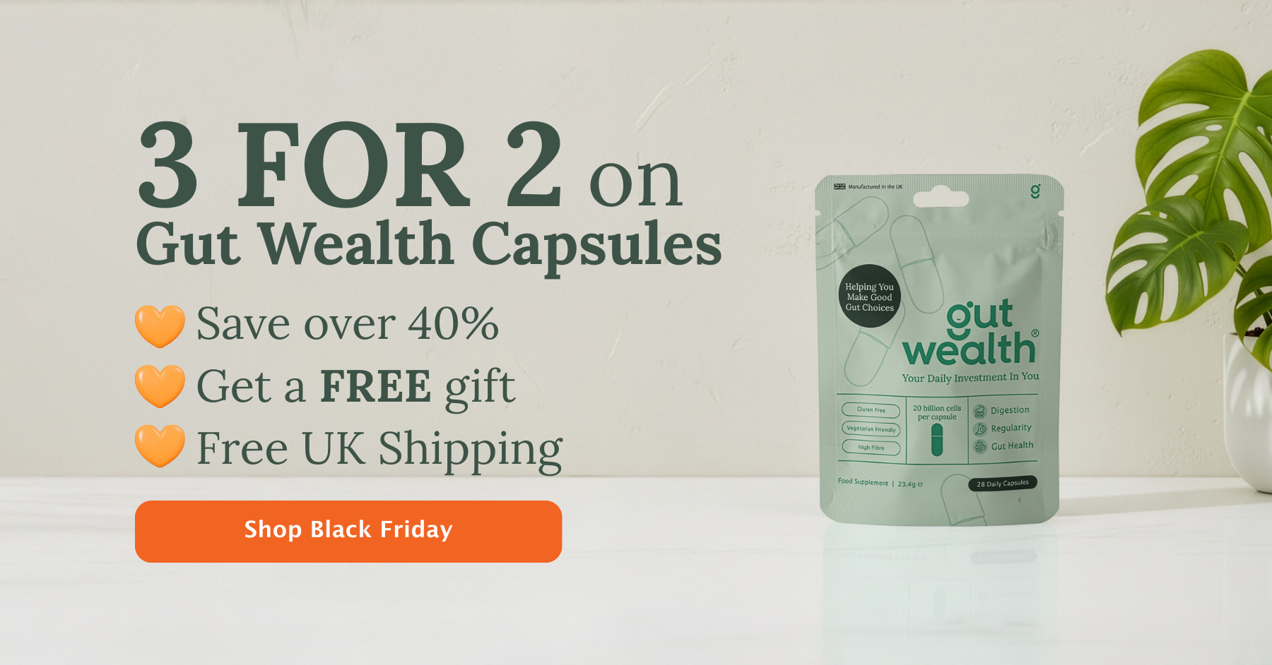 Gut Wealth® capsule food supplement works with your microbiome to boost your immunity, calm digestive upset and improve bowel regularity
