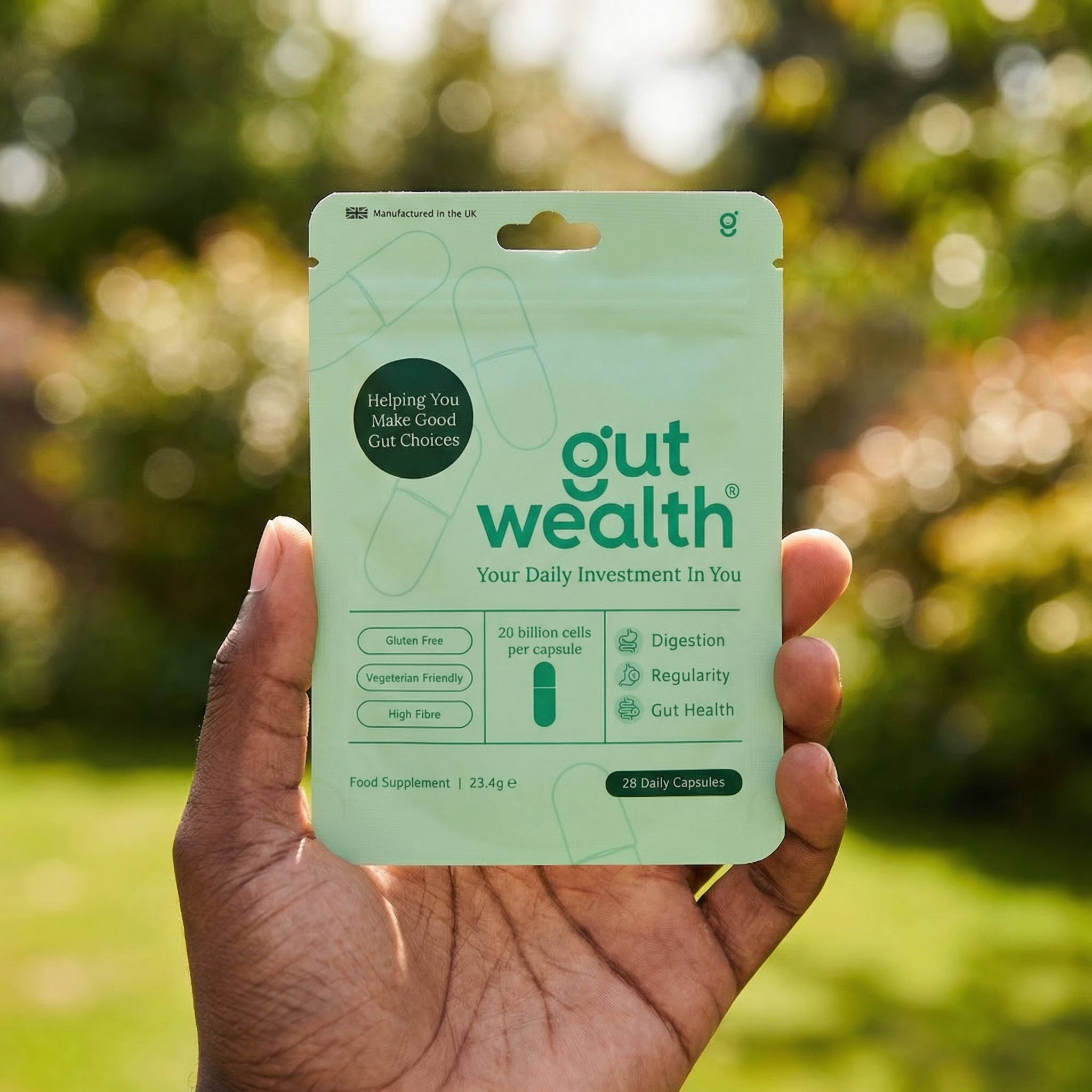 Each Gut Wealth® capsule works with your very own gut microbiome to boost your immunity and relieve abdominal discomfort and bloating.
