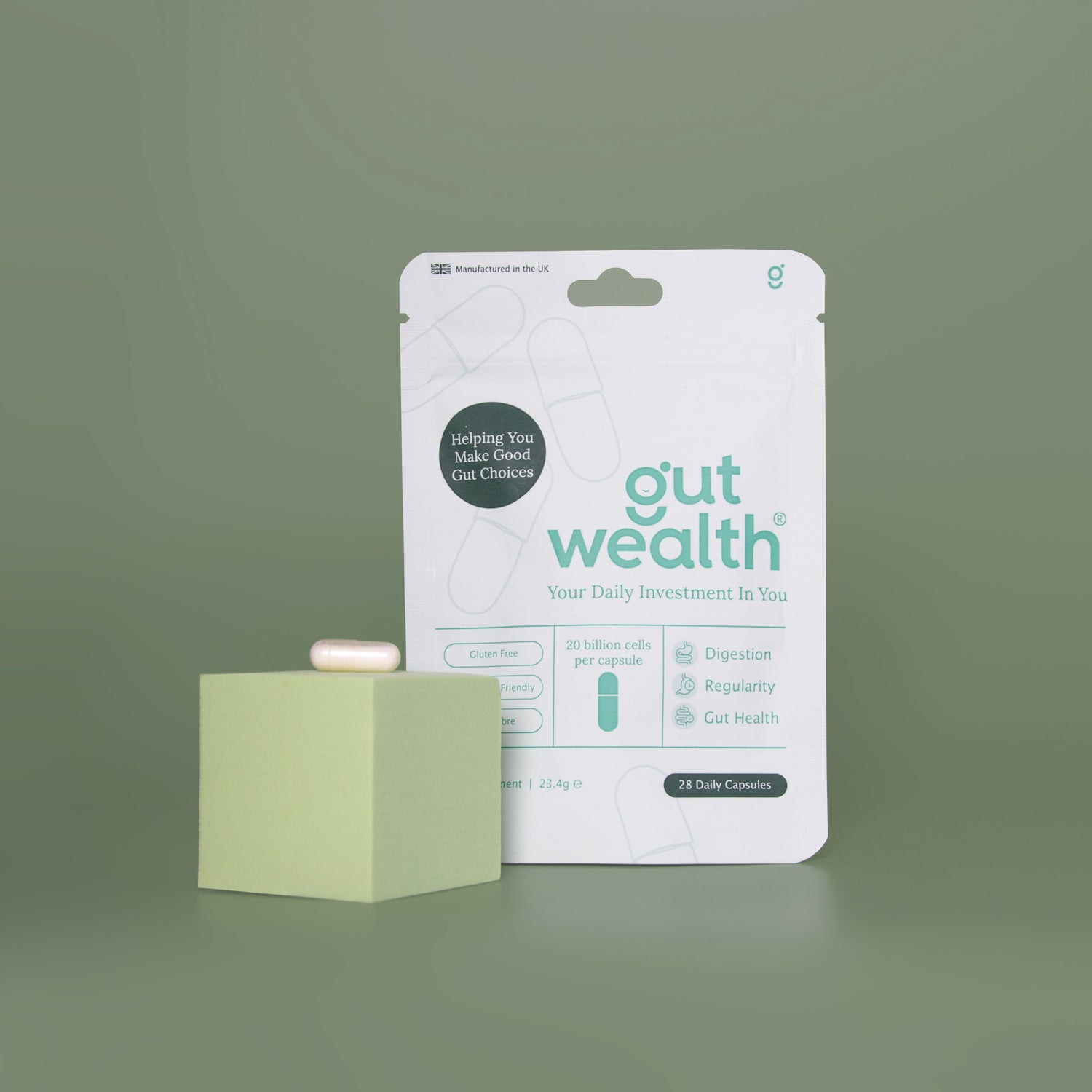 Each Gut Wealth® capsule works with your very own gut microbiome to boost your immunity and relieve abdominal discomfort and bloating.